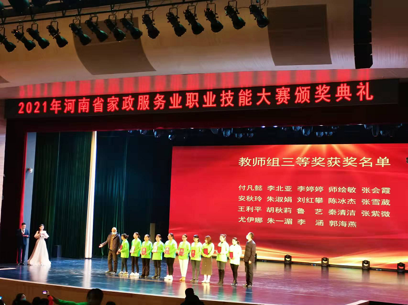 12月6日,河南省家政服务业职业技能大赛经过紧张激烈的比拼,圆满落下帷幕。公司家政学专业师生代表队经过市级选拔,在全省240多名选手中脱颖而出,获得佳绩。张会霞、师绘敏老师分别荣获家务服务、家庭照护赛项教师组三等奖,20家政01班员工古莉获得育婴员赛项员工组二等奖。