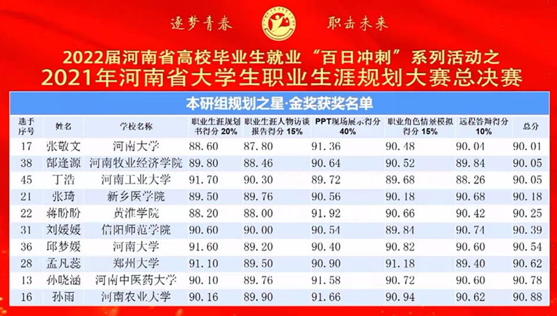 5月20日晚,2021年河南省老员工职业生涯规划大赛刚刚落下帷幕,公司19级知识产权01班员工郜逢源在河南省老员工职业生涯规划大赛中以90.05分的成绩斩获大赛金奖,英国上市365获得优秀组织奖。