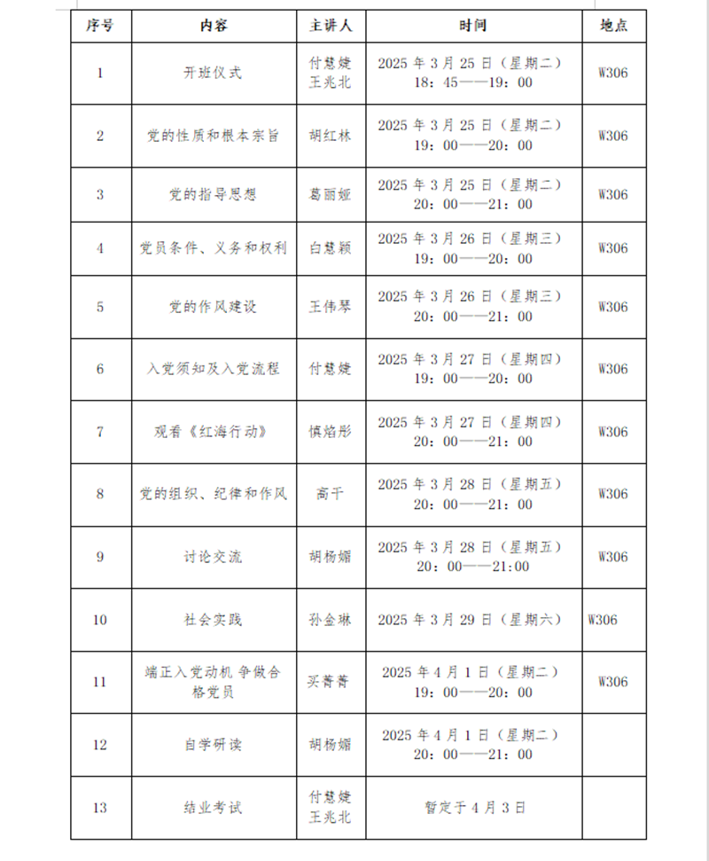 为深入学习党的二十大和二十届二中、三中全会精神,全面贯彻习近平总书记关于党的建设的重要思想,教育引导入党积极分子深刻领悟“两个确立”的决定性意义,增强“四个意识”、坚定“四个自信”、做到“两个维护”,切实把牢发展党员“入口关”和“质量关”,经研究,决定举办2025年第一期入党积极分子培训班,现将有关事宜通知如下: