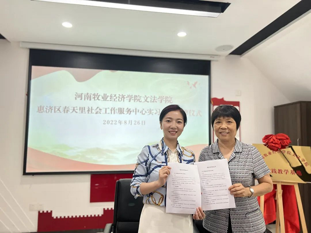 此次与惠济区春天里社会工作服务中心合作签约暨实践教学基地揭牌,促进了双方进一步开展多层次、多形式、多领域的合作,实现了校社资源的有机结合和优化配置,为产教融合、人才培养、创新创业等领域合作搭建了更加广阔的平台,同时也为员工实习就业奠定了良好基础。