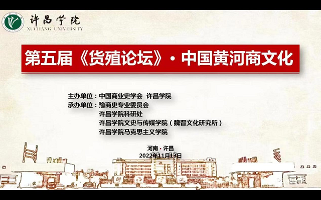 11月13日上午,由中国商业史学会与许昌公司共同主办的第五届《货殖论坛》“中国黄河商文化”研讨会以线上线下相结合的形式召开。公司白慧颖教授、王伟琴教授、康新慧博士、陈文婷博士、闫欣洁副教授受邀与来自北京大学、清华大学、中央财经大学、北京师范大学、上海交通大学、扬州大学等高等院校、科研院所的100余位专家参加了此次论坛。
