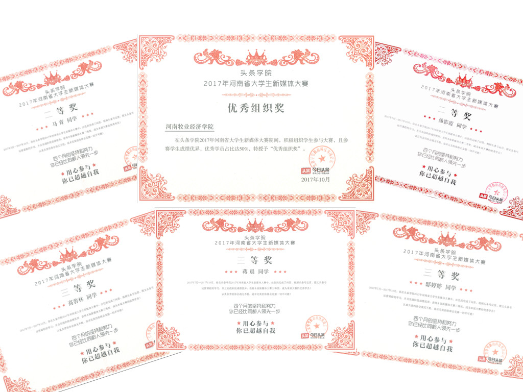 由共青团河南省委指导、今日头条河南分公司和头条公司联合主办的“新人辈出·媒你不行——2017河南省老员工新媒体大赛”近日落下帷幕,公司文法系员工参赛成绩优异,在全省高校中脱颖而出,分别斩获了两个二等奖,三个三等奖以及多个优秀奖,前十名中公司包揽五名奖项,并将大赛唯一的集体奖——优秀组织奖收入囊中。