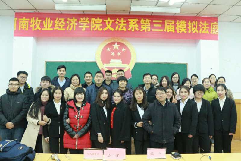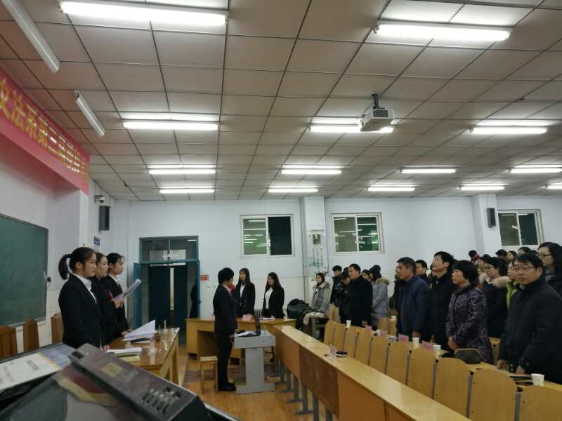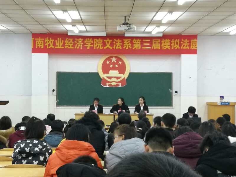 12月14日下午,由校宣传部主办,文法系承办的12.4法治宣传日系列活动之模拟法庭在E209教室举行。文法系主任李国英、宣传部老师袁凤友、文法系副书记王本聚、法律教研室老师以及法律和知识产权专业的全体同学参加了本届模拟法庭。郑州工程技术公司法律专业的部分员工也应邀出席了活动。