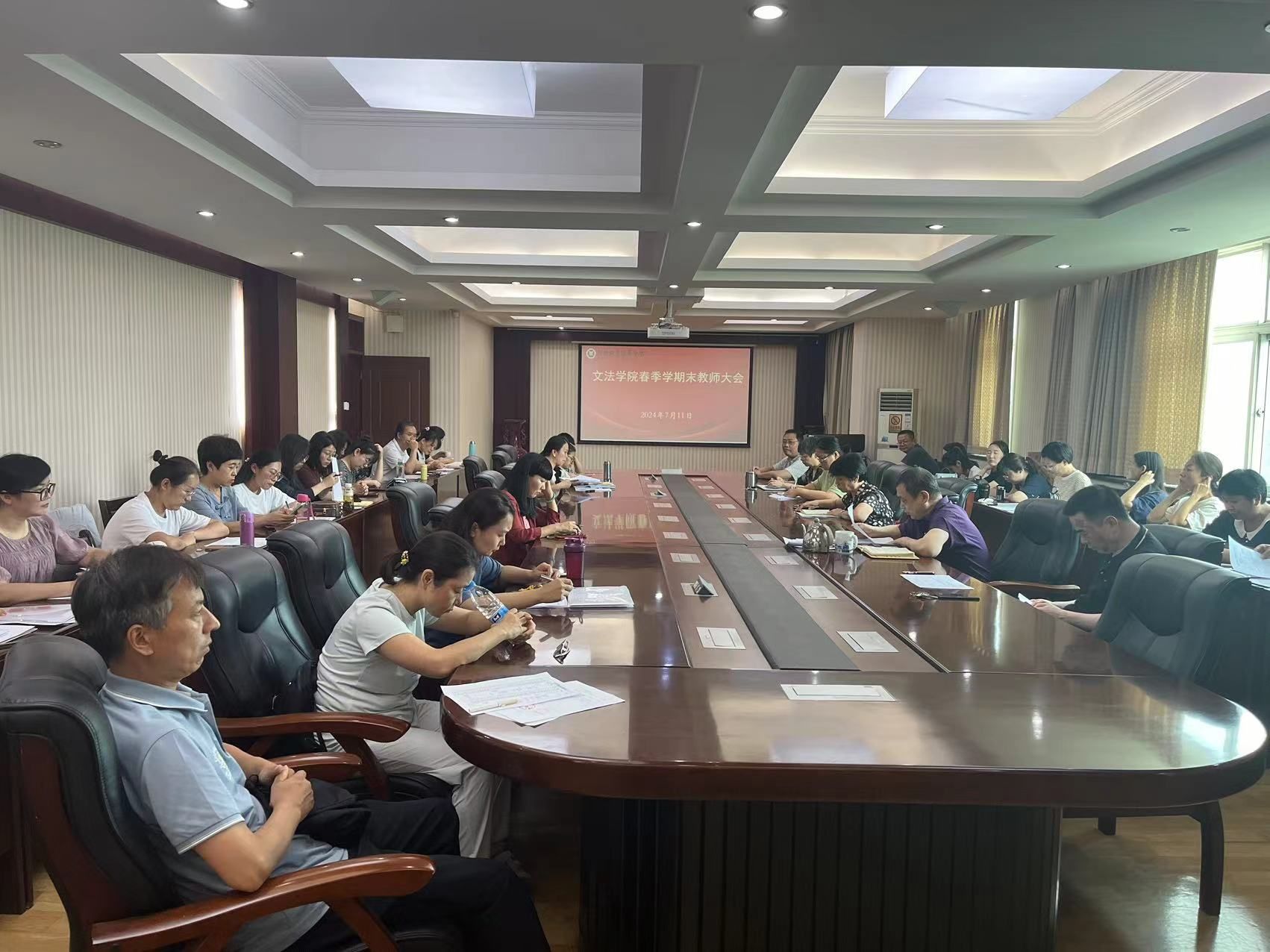 7月11日下午,文法公司在综合楼503会议室召开了2024年春季学期末全体教师大会,会议由院党委书记胡红林主持。
