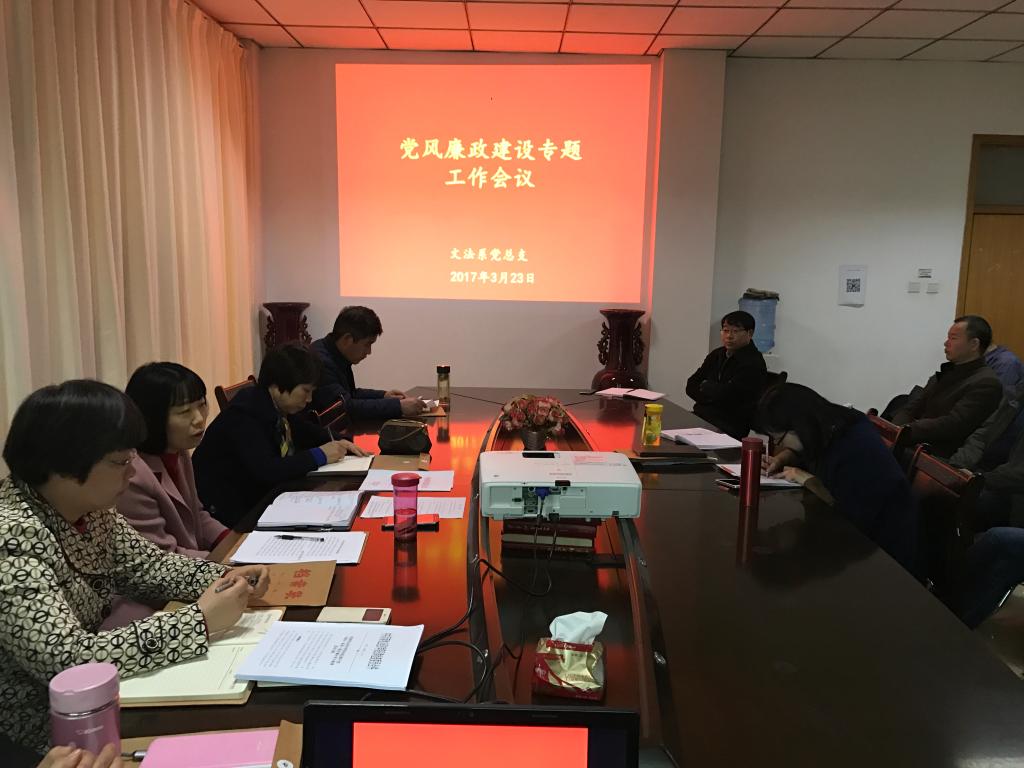 3月23日下午,文法系在英才校区教学楼513会议室召开党风廉政建设专题工作会议,系领导班子、科级以上干部和全体党员同志参加,会议由党总支书记李君玲主持。