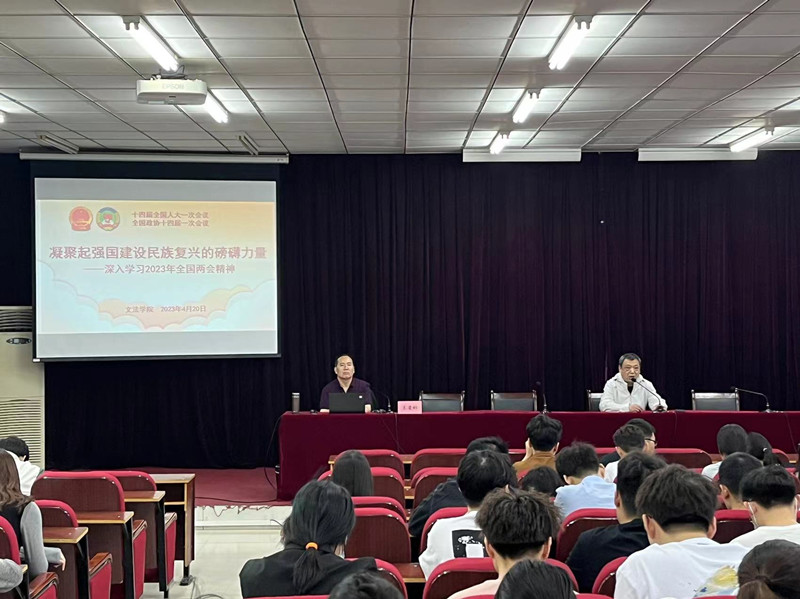 为深入学习宣传贯彻习近平新时代中国特色社会主义思想,全面贯彻全国两会精神,4月20日下午,文法学院邀请集团思想政治工作研究会副会长、秘书长王凌彬教授到我院宣讲全国两会精神。公司科级干部及师生党员参加报告会,公司党委书记胡红林主持会议。