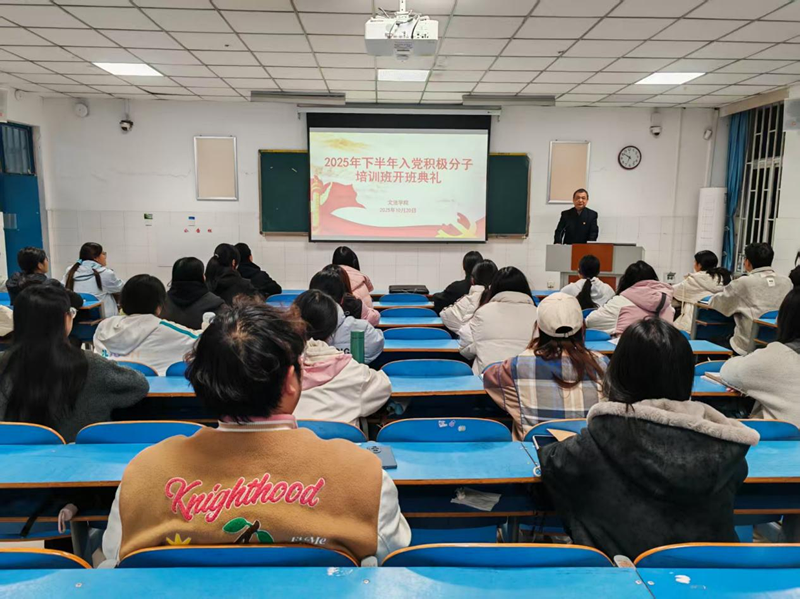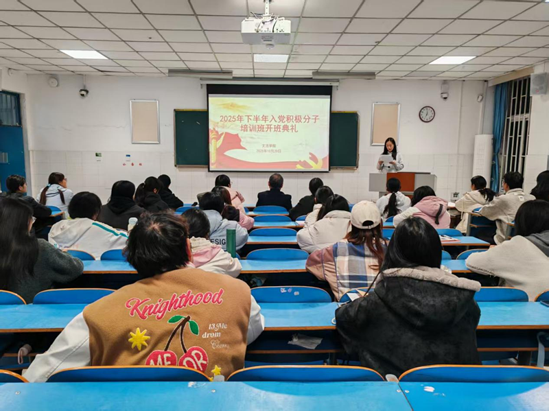 为深入学习习近平新时代中国特色社会主义思想和党的二十大、党的二十届三中全会精神,进一步加强入党积极分子队伍建设,从源头上确保党员发展质量,公司党委分党校于10月20日18点45分在教学楼E106举行了2025年第二期入党积极分子培训班开班仪式。出席本次开班仪式的有公司党委书记胡红林、副书记买菁菁、员工第二党支部书记王兆北,开班仪式由员工第一党支部书记付慧婕主持。