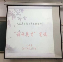 为了朗读经典,让经典诗文融入生活,让员工们体会经典诗文的艺术魅力。在2017年4月17日晚七点,我系在A教学楼举办了“诗词英才”初赛。