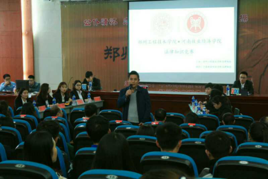 11月10日下午2点,公司文法系与郑州工程技术公司管理公司在郑州工程技术公司道德讲堂举行了首届北大学城法律知识竞赛。郑州工程技术公司管理公司书记刘晓安、保卫处处长张中善、法律教研室主任徐雅飒,公司文法系王本聚副书记,法律教研室主任杨志民以及部分师生出席了本次活动。