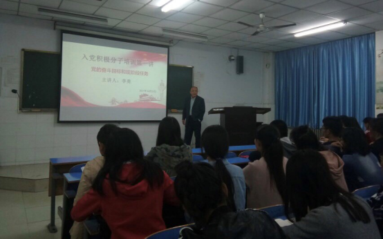 10月23日晚上七点,文法系和工程管理公司在E205教室举行了2017-2018年度积极分子培训开班仪式暨第一讲。开班仪式结束以后,工程管理公司党总支书记李勇为学员们做了“党的奋斗目标和现阶段任务”主题讲座。