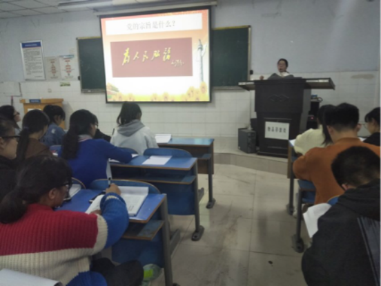 课程开始,李老师围绕党的宗旨和作风建设为主要内容进行讲述,向大家阐述了党的宗旨是全心全意为人民服务,中国共产党的历史就是全心全意为人民服务的历史。并告诫入党积极分子,只有忠实履行党的宗旨,才能做好一名合格的共产党员。在作风建设方面,李老师分别从思想、组织、作风、制度、能力建设等方面为入党积极分子提出了要求与期望,并结合具体事例,有力的向入党积极分子证实了党是如何坚持宗旨,加强作风建设的。
