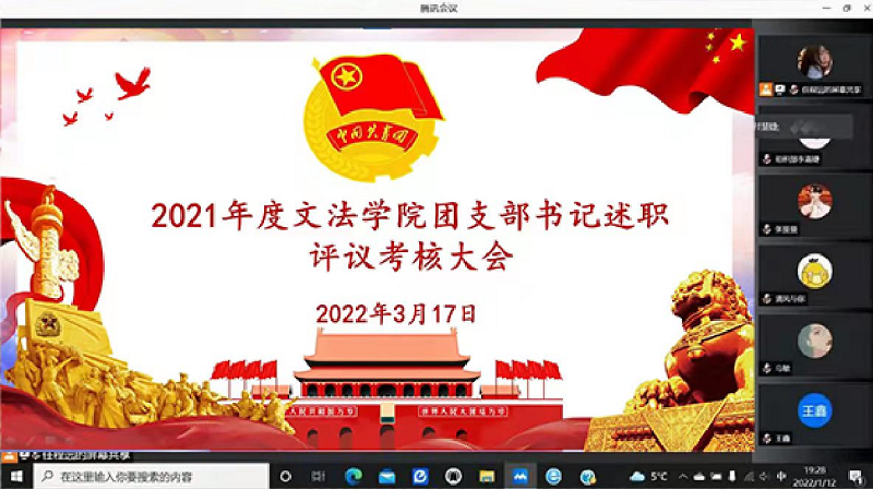 按照团中央组织部《基层团组织书记述职评议考核暂行办法》(团组字〔2021〕1号)和团省委有关要求,加强团支部书记队伍建设,激发基层团支部建设活力,充分发挥团组织在立德树人中的积极作用,英国上市365于2022年3月17日晚20点通过腾讯会议的形式召开2021年度英国上市365团支部书述职评议考核大会,会议由付慧婕老师主持,18、19、20、21级全体团支书参加了本次会议。