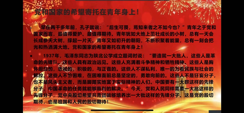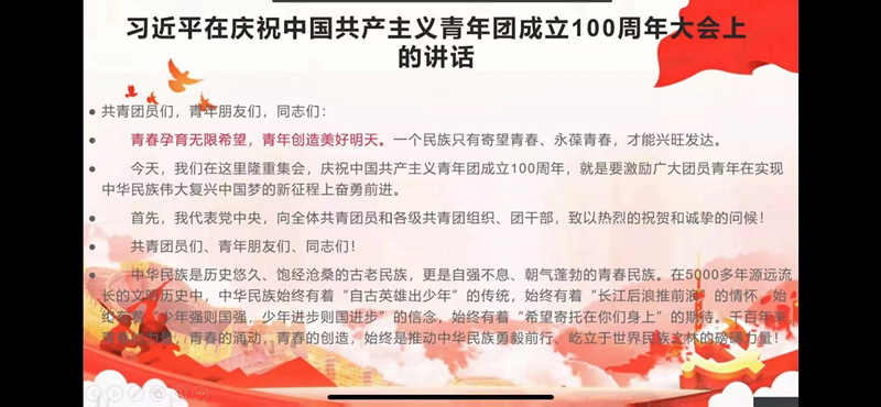 为教育引导青年团员争做伟大理想的追梦人,做伟大时代的生力军,让青春在祖国和生命最需要的土壤中绽放出绚丽之花。英国上市365于5月12日13时在钉钉直播开展”以青春之我,贡献伟大时代“线上主题团课,21级全体员工参加。
