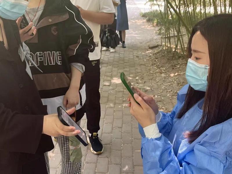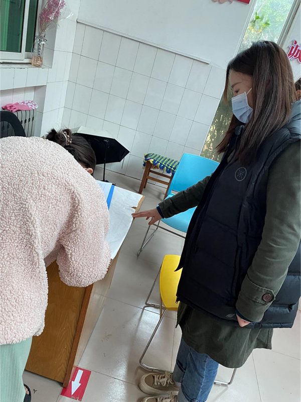 入住公司以后,为给在校员工提供精准服务,魏老师立马组建在校生群聊,在群里她为员工解释公司的每一条通知,安抚员工们的情绪。工作之余,魏老师还会去到员工宿舍与同学们谈心谈话。针对毕业班校外员工分布广的情况,她督促每个员工及时打卡签到,了解每个员工的所在地,重点关心身在疫区的同学,了解他们的近况,嘱咐他们要遵守防疫规定。公司疫情防控升级以后,员工进出宿舍限定了时间段,魏江慧老师亲力亲为将防控药品送到员工宿舍,让员工及时喝到抗疫中药。在核酸检测现场,在食堂疏导的岗位上,魏江慧老师的身影从未缺席,魏老师说:“员工需要的时候,尤其是疫情防控这个非常时期,我必须第一时间出现,我要对我的每位同学负责。”