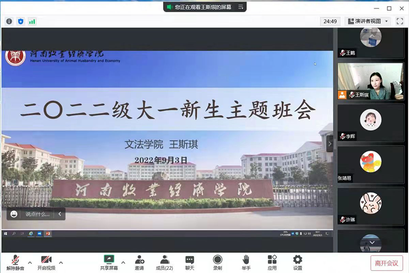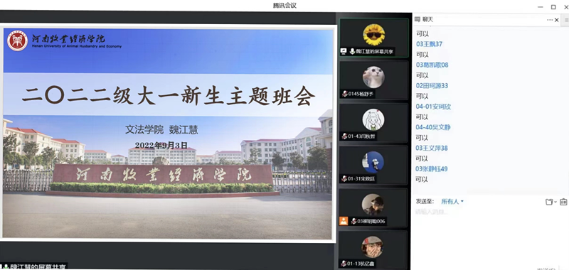 会议伊始,辅导员们进行了简要的自我介绍,并对新生同学们的到来表示热烈欢迎。随后,围绕校情院情、员工管理规定、疫情防控要求、线上网课学习动员及接下来的教学工作进行了重点安排。要求同学们做好辅导猫打卡任务,认真上好网课,为返校提前做好准备;遵守公司管理规定,做到网课不缺课、不迟到、不早退;鼓励同学们尽快适应老员工活,合理规划大学四年时光,努力做到敢于有梦、勇于追梦、勤于圆梦;积极向暑期疫情防控中涌现出的青年志愿者学习,树立理想信念,以实际行动早日向党组织靠拢。最后,辅导员们为2022级新生们播放了关于理想信念教育、思政教育、员工管理规定、心理健康教育及防护知识等相关视频,帮助同学们尽快了解老员工活。