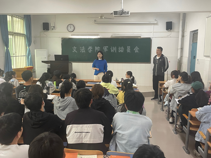 军训是大学教育的必修,是国防教育的需要。一个国家和民族,没有一支强大的国防后备力量,没有千千万万信念坚定、居安思危的青年人才,必然失去前进的动力和根基。青年强,则国家强,两位老师在动员会上对参训员工提出四点要求:一要充分认识军训的意义,增强国防意识;二要严格训练,遵守纪律,一切行动听指挥;三要勇干拼搏,争创佳绩,为班级争光;四要提高安全意识,注意个人防护。