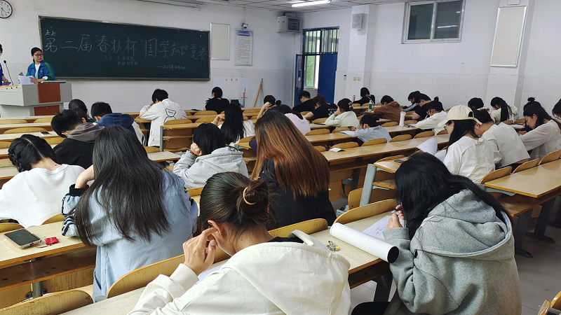 下午四点三十分,工作人员统一发放试卷,国学知识选拔赛正式开始。在一个小时的竞赛过程中,同学们独立自主、认真答题,现场秩序良好。紧张的答题环节结束后,参赛同学纷纷表示:通过本次答题我们发现了自己在国学知识方面的不足,并会在今后的学习与生活当中继续保持对国学文化的热爱,更多的了解国学文化知识,让自己能够诗意地栖息在国学海洋中,学国学、爱国学。