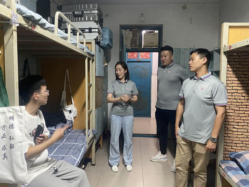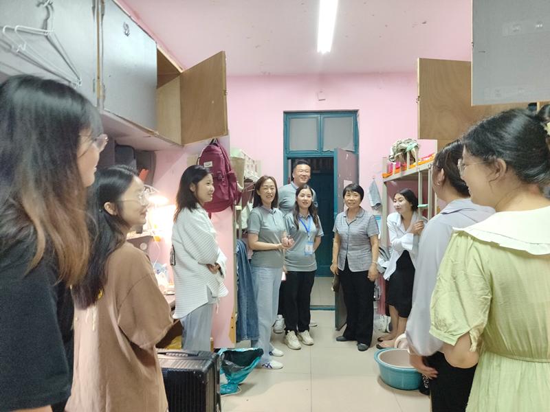 又是一年迎新季,关心走访为新生。为进一步关心2023级新生入学适应性问题,及时了解新生入校学习生活情况,9月10日下午18时,公司经理李国英、党委副书记买菁菁、团委副书记王兆北、新生班辅导员付慧婕、高干走访了2023级新生宿舍。