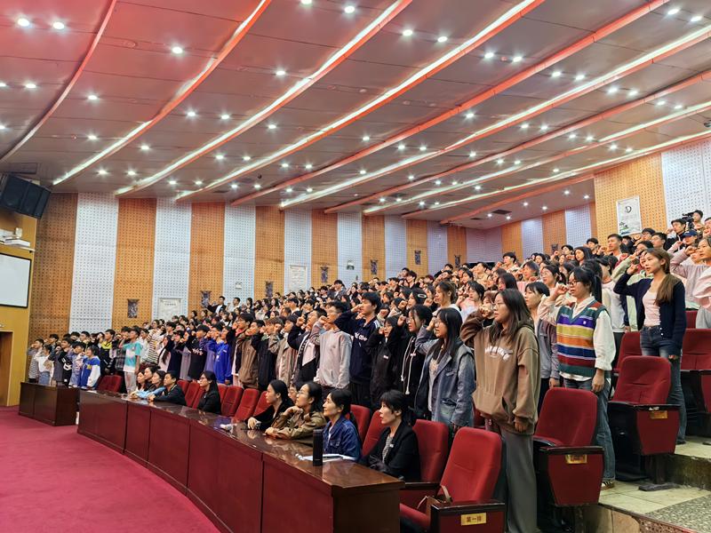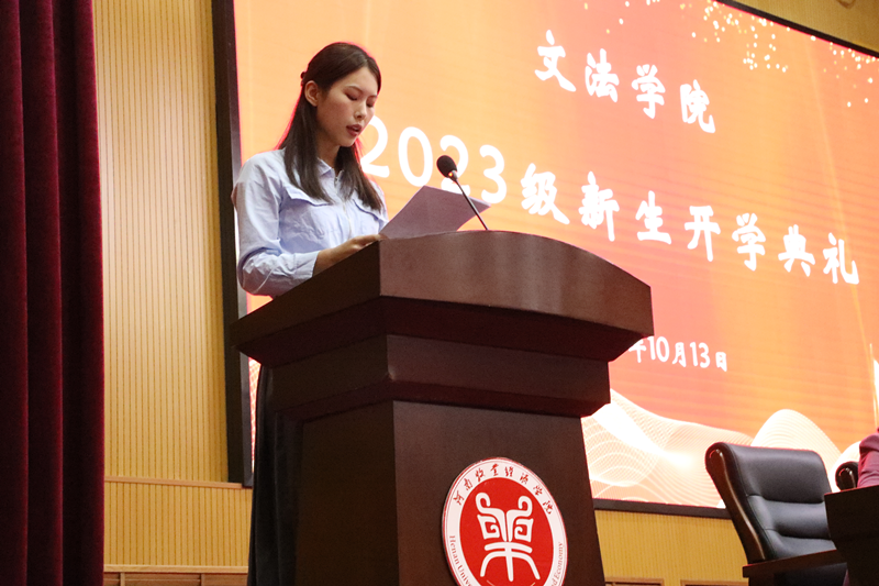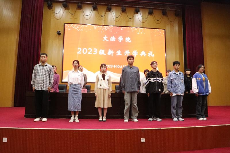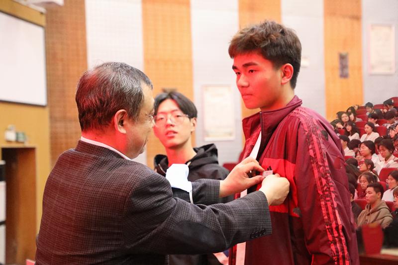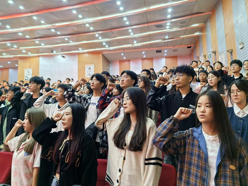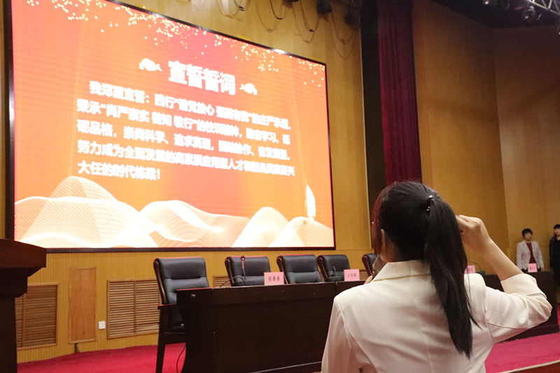 典礼最后,公司领导为新生代表佩戴院徽,孟依涵同学进行领誓,全体新生郑重宣誓。“我将践行‘请党放心,强国有我’的庄严承诺,秉承‘尚严崇实,善知敏行’的校训精神,勤奋学习、砥砺品格,崇尚科学、追求真理,团结协作、奋发图强,努力成为全面发展的高素质应用型人才和担当民族复兴大任的时代栋梁!”一句句掷地有声的誓言响彻整个报告厅,2023级新生的老员工活由此拉开序幕。