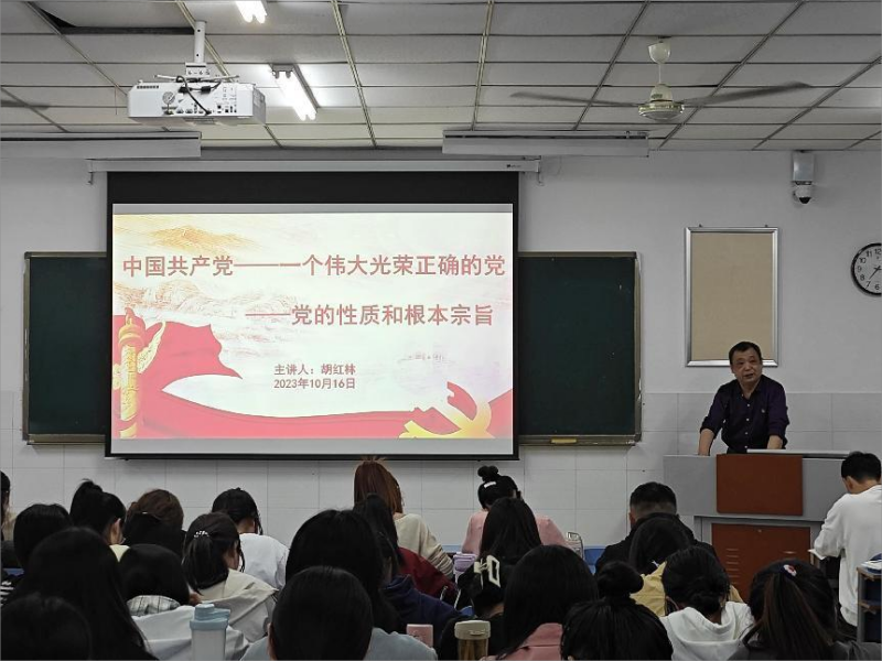 胡红林从党的性质和根本宗旨决定了中国共产党是一个伟大光荣正确的党的维度入手,以伟大建党精神为主干,分别从“坚持真理、坚守理想;践行初心、担当使命;不怕牺牲、英勇斗争;对党忠诚、不负人民”等四个方面深刻阐述了党的性质和根本宗旨。胡红林讲到,无论是中国共产党带领中国人民浴血奋战从而取得革命的胜利,还是新时代中国特色社会主义事业取得的巨大成就,无不体现了中国共产党以人民为中心的发展理念;他强调指出中国共产党是中国工人阶级的先锋队,同时是中国人民和中华民族的先锋队,始终坚持以人民为中心,同人民群众保持血肉联系。他以生动鲜活的案例和充实丰厚的内容,引导入党积极分子充分深入理解党的性质和根本宗旨。最后,胡红林强调同学们要认真学习理解党的知识,不要局限于理论表层,要将党的性质和根本宗旨深刻融入贯彻到日常生活中,内化于心,外化于行,做到理论与实际相结合,弘扬伟大建党精神,积极向党组织靠拢。