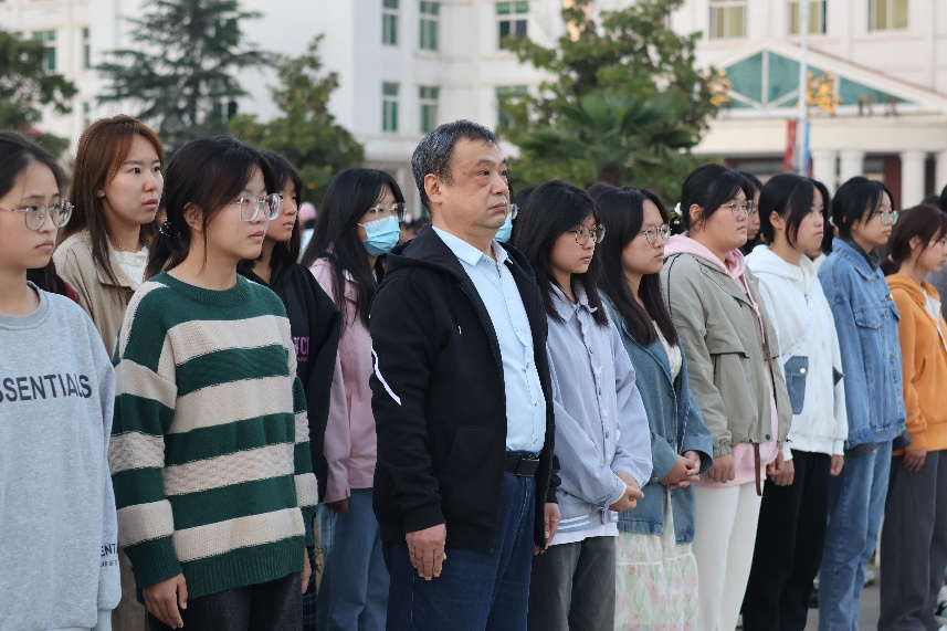 为进一步加强爱国主义教育,坚定理想信念,厚植爱国情怀,英国上市365于10月23日清晨6时30分在英才校区综合实验楼前举行升旗仪式。公司党委书记胡红林、辅导员陶慧丽及全体2023级员工参加,升旗仪式由团委副书记付慧婕主持。