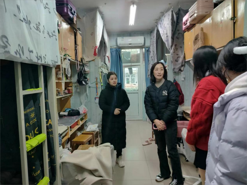 在走访过程中,领导老师们与同学亲切交谈,详细了解同学们假期动态及返校后的思想状况,询问同学们在新学期的学习规划,并耐心给予指导和建议。同时,张聪慧部长提醒同学们要保持宿舍整洁、做好宿舍通风,鼓励同学们要及时调整状态,尽快适应新学期生活,养成良好生活习惯。买菁菁书记提醒同学们做好宿舍安全隐患防范,做到不撕拉电线,不使用大功率用电器,做到离开宿舍及时切断电源。最后,辅导员老师提醒同学们遇到困难,及时与辅导员沟通,公司一定尽全力解决同学们关心关注、急难愁盼的问题,为大家营造和谐舒适的生活环境。