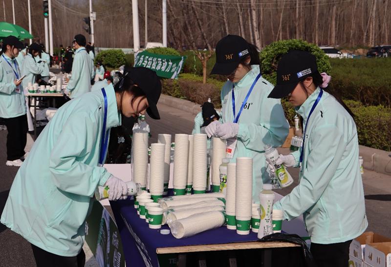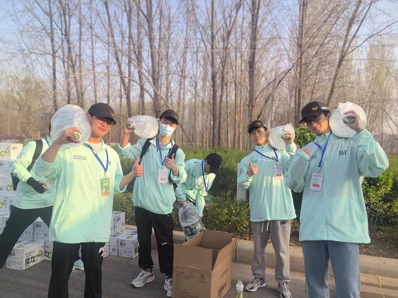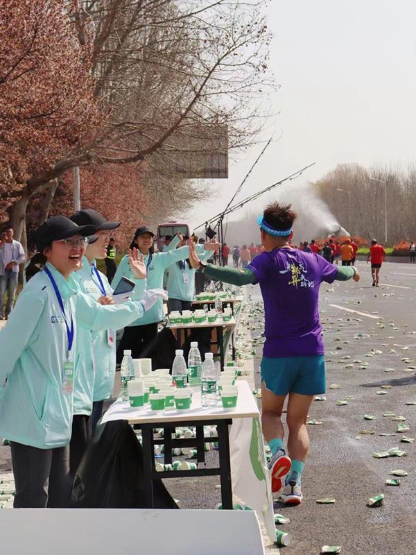 伴随着开赛笛声的响起,近5万余名选手激情开跑,沿着赛道一路向前。与此同时,现场加油声、呼喊声延绵不绝,跑友们热情似火,上演了一场万人狂欢的奔跑景象。比赛过程中,根据赛前培训,志愿者们采取前疏后密的纸杯摆放方式,并及时补水,保证水源充足。在人群高峰期,志愿者们分工明确,工作的同时不忘为运动员们呐喊助威,获得了运动员们热情的反馈。赛后全体志愿者及时清理赛道垃圾,恢复了赛道原本的整洁,获得了马拉松组委会的高度认可和赞扬。