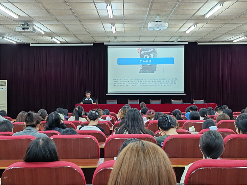 杨雪阳同学作为国家奖学金标兵获得者、国家励志奖学金获得者,今年以391分考研上岸湖北大学,她从学习、志愿、实习多个方面为同学分享了宝贵经验。她勉励学弟学妹们,学习是不断进步的过程,要抓住学习的机会。“青年正当其时,潜力无限。”