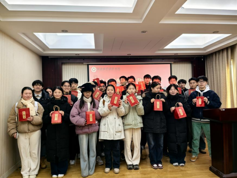 随后,党委副书记买菁菁,团委副书记付慧婕、王兆北以及各位辅导员纷纷行动起来,将一份份精心准备的考研礼包分发到同学们手中。礼包虽小,却心意满满,里面装着能在寒冷冬日为学子们送去温暖的暖贴、寓意着旗开“德”胜的德芙巧克力、承载着老师同学们殷切祝愿的手写祝福卡、方便使用的纸巾、还有象征着对大家考研成功美好祝愿的祝福挂件。