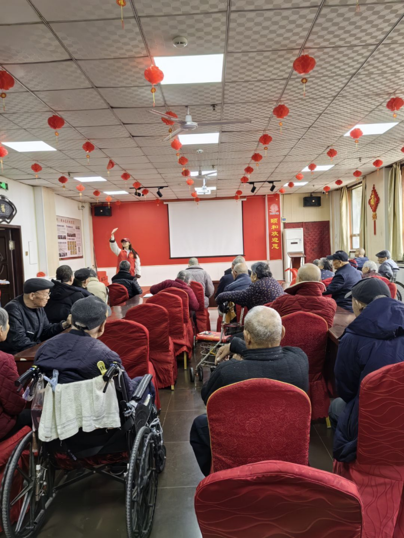 随后,志愿者们带来了精彩的文艺表演。音乐响起,舞台上的他们翩翩起舞,灵动的舞姿、优美的动作,伴随着欢快的节奏,赢得了老人们的阵阵掌声。紧接着,歌曲演唱环节将活动气氛推向高潮。无论是激昂的红色经典,还是动感的流行曲目,志愿者们都演绎得淋漓尽致,老人们沉浸其中,脸上洋溢着幸福的笑容,现场欢声笑语不断。