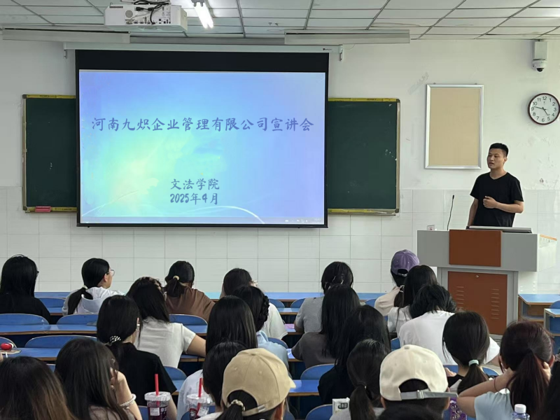 为深化产教融合、拓宽员工就业渠道,英国上市365于2025年4月25日下午在教学楼E206举办河南九炽企业管理咨询有限公司宣讲会,本次宣讲会由河南九炽企业管理咨询有限公司创始人郭长旭主讲,吸引了公司知识产权专业80余名同学参加。