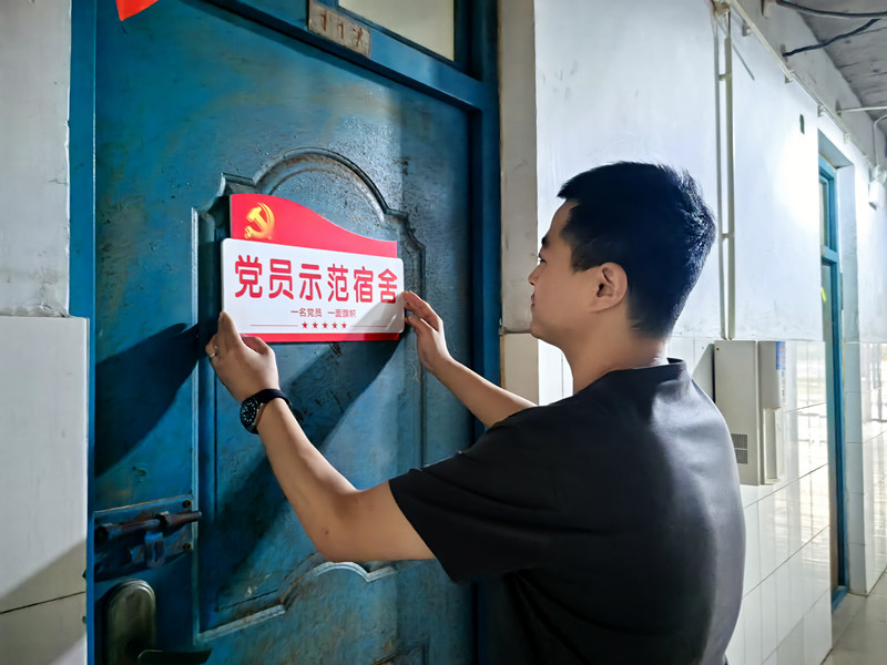 在“党员宿舍”挂牌活动现场,党委副书记买菁菁指出,员工党员宿舍挂牌是公司党建工作的一项重要举措,也是强化党建引领,发挥党员模范带头作用的一项重要工作。党员宿舍挂牌对于员工党员来说不仅是一种荣誉,更是一种激励,激励员工党员们时刻提醒自己“一名党员就是一面旗帜”,平时的学习、工作、生活中更加严格要求自己,用自身的形象和实际行动影响和带动身边同学。紧接着,团委副书记王兆北详细了解了同学们的思想、学习和生活方面的情况,引导员工党员们带动其他员工提升自我管理的能力,培养良好的宿舍生活习惯,遵守宿舍文明公约,共同营造和谐有序、文明健康的宿舍氛围。