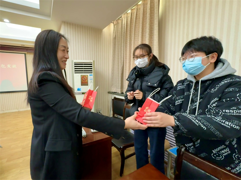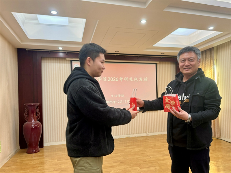 现场气氛热烈而温馨,同学们接过礼包,脸上洋溢着感动与喜悦,纷纷表示一定会全力以赴,不辜负公司的期望。考研的征程虽充满艰辛,但文法学子们从来不是孤身一人,公司的这份关怀如同冬日里的暖阳,照亮并温暖着他们前行的道路。