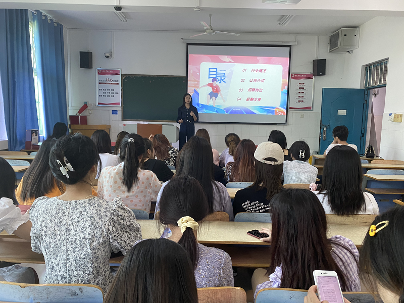 活动开始,北京学而思教育科技有限公司的负责人崔文瑞老师分别从关于我们、招聘岗位、薪资待遇、职业发展等方面进行宣讲。首选,崔老师向同学们介绍了学而思公司的概况,公司已拥有上万优秀教师,年培训人次逾300万人,在北京、上海、天津、广州、深圳等55个城市建立分校,业务辐射全国。一直以来,学而思秉持着用科技推动教育进步的使命,研发了包括魔镜、IPS在内的多种教育科技产品。郑州分校于2020年建立,发展至今已经有1500人的工作人员。其次,负责人向大家展示了员工的工作环境和精彩生活,讲解了职业发展、薪资待遇及节日福利等。最后,负责人着重介绍了公司的招聘岗位及招聘流程,也针对同学们的提问做出了详细的回答。