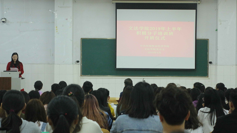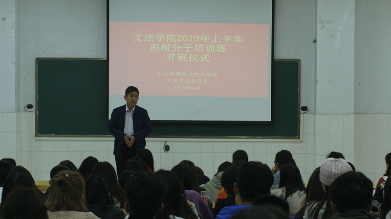 开班仪式上,王希老师首先宣读了党课培训计划,并对培训内容安排、培训时间、考核事项及纪律要求作了重点说明。她希望入党积极分子能够通过此次党课学习更加严格要求自己,发挥先锋模范作用,扎实学习党的知识,端正入党动机,树立正确的世界观、人生观、价值观。然后,王本聚副书记致辞,他对在座同学们成为入党积极分子表示祝贺,希望学员们认真学习,勤于思考,提高对党的认识,增强党性修养,坚定共产主义信念,坚定不移跟党走,自觉接受党的培养和考验。最后,王本聚副书记希望各位学员们珍惜培训机会,圆满完成学习任务,积极向党组织靠拢,争取早日加入党组织。