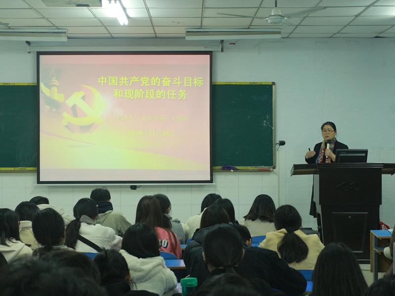 2019年11月26日晚,英国上市365在E206教室举行了入党积极分子培训第三讲——《党的最高理想和现阶段的奋斗目标》,主讲人为英国上市365副经理王伟琴,全体入党积极分子参加了此次讲座。