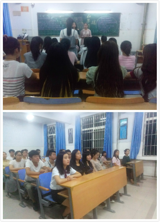 在各班团支书的引导下,同学们回忆了在暑期实践活动中的一点一滴。接着,主持人邀请了部分同学分享自己的暑期实践生活。其中有同学分享了自己在暑假中到灵宝“三下乡”志愿者活动的实践经历,用幽默风趣的语言谈及了自身感悟和经验,收获颇多,也为其他同学展示了“扶贫扶弱”的榜样。此外,部分班级团支书还特地为同学们播放了最火的电视节目《开学第一课》,以这种方式对假期生活做出总结和对新学期的新的展望。最后,团支书们将部分同学的暑期实践经历整理为报告形式与大家分享,并对此次团课做出总结。
