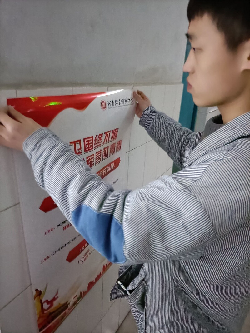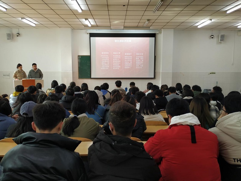 活动开始,杜文员同学首先向大家讲解了老员工入伍的意义,让同学们更加深刻地了解到应征入伍的重要性。接着,杜文员同学又介绍了老员工征兵入伍的待遇和补助政策。随后,李静茹同学着重向同学们讲解了女老员工征兵入伍的条件及相关政策,让女同学们对征兵入伍有了更深刻的了解。最后,李静茹同学表示,征集在校老员工入伍是新形势下提高部队兵员素质、加强国防和军队现代化建设的重大举措,作为老员工的我们应积极响应国家号召,不负青春,不负国家。