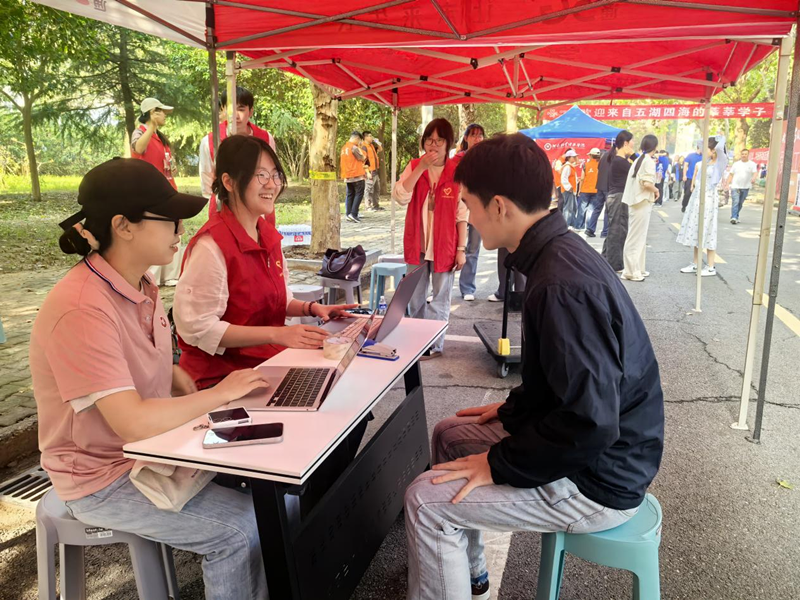 迎新现场氛围温暖热烈。身着志愿者服的员工们以真挚的笑容和饱满的热情迎接新同学,他们主动引导、耐心陪伴,协助有需要的同学办理绿色通道相关手续。资助专干梁乐一老师则坚守在咨询台前,耐心解答新生和家长们提出的关于奖助学金评审、助学贷款流程、勤工助学岗位设置等问题。她结合实际案例,逐条讲解政策要点,并贴心提醒同学们办理过程中容易忽视的细节,让新生与家长们心里更加踏实。