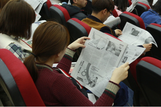 讲座以一道面试题拉开序幕,员工们认真思考踊跃发言,展现了较强的逻辑思维能力和语言沟通能力。随后,工作人员向员工们讲述了高校第一传媒——《校园在线》的办报宗旨和意义,并详细介绍了该报每个版面的特色。主讲人告诫员工们要“多读书,读好书”,鼓励大家多阅读中国的经典名家著作,丰富精神世界,增强文化自信,同时也鼓励员工们积极练笔,踊跃投稿。与会同学认真聆听,积极参与互动,展现了老员工的风采。
