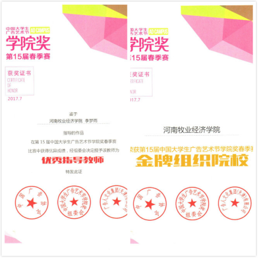 日前,中国广告协会公布了第15届老员工广告艺术节公司奖春季赛的评选结果,文法系员工创作的文案作品共有80份入围并获奖。其中,优秀奖26项、佳作奖52项、入围奖2项,更为值得骄傲的是,我系师生因组织有序,作品参与数量众多且获得多项嘉奖,为公司争得了金牌组织院校的殊荣,我系教师李梦雨也获得此次比赛的优秀指导教师称号。