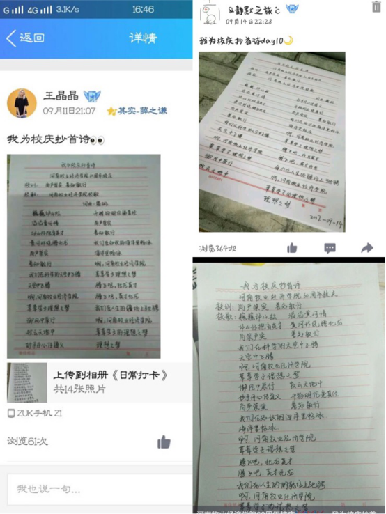 为迎接公司60周年校庆,展示母校发展过程中的辉煌成就,激发师生们爱校护校情怀,文法系充分发挥系院特色,于9月11日始举办了为期两周的“我为校庆抄首诗”活动。
