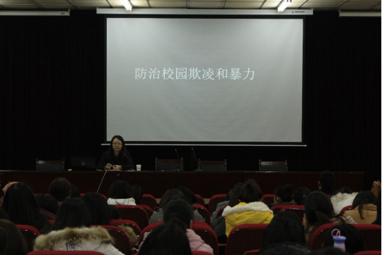校园,本来是一方净土,文明的殿堂。然而,近年来校园暴力悲剧时有发生,给宁静的校园蒙上了一层阴影。为了让同学们远离校园暴力,更好地学习生活,同时强化员工的法律意识,文法系于2017年12月7日晚上7点在E110教室开展了“防治校园欺凌和暴力”的专题讲座。河南省人民法院高级法官多甜甜担任主讲人,文法系副主任李新宇主持,公司法律事务、知识产权管理班的全体同学聆听了讲座。