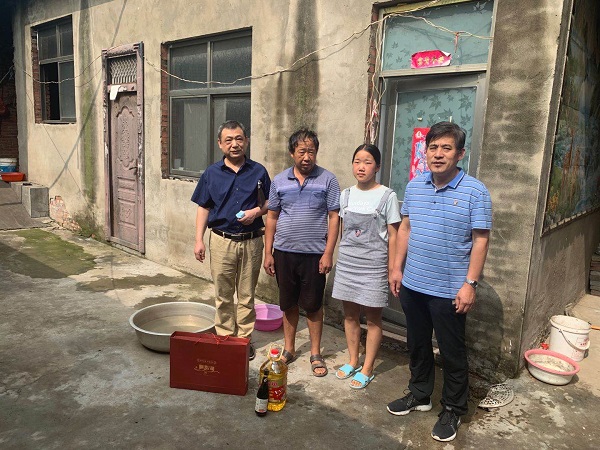 为更好地贯彻落实高校员工资助工作, 7月23日,公司党委书记胡红林、副书记王本聚和资助专员欧阳宇光冒酷暑走访慰问了洛阳伊川县杨庄和新密市尖山乡钟沟村的贫困员工家庭,并到贷款员工家庭进行了催贷工作。