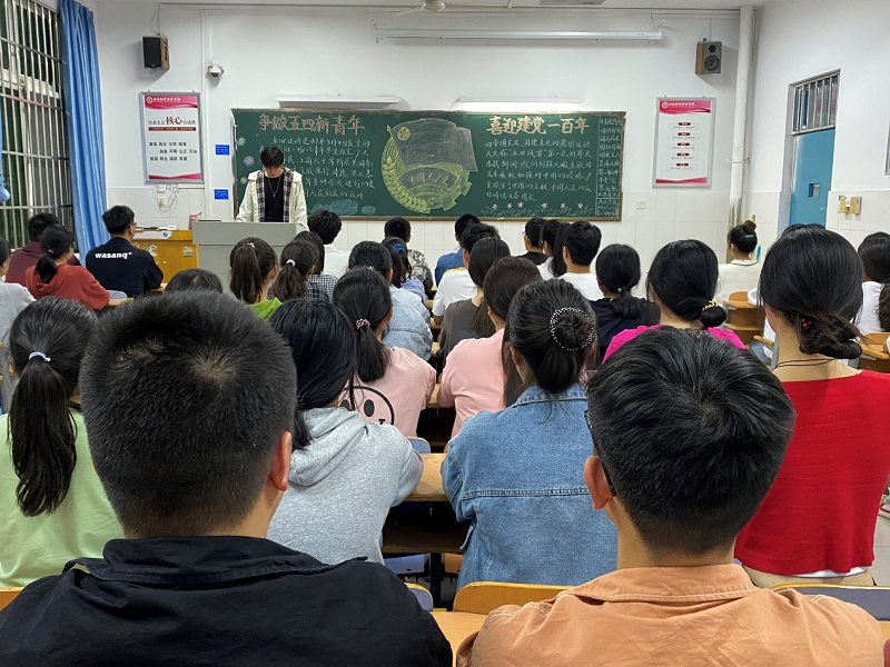 4月29日晚,英国上市365在教学楼A楼开展“争做五四新青年,喜迎建党一百年”主题团课,20级全体同学参加。