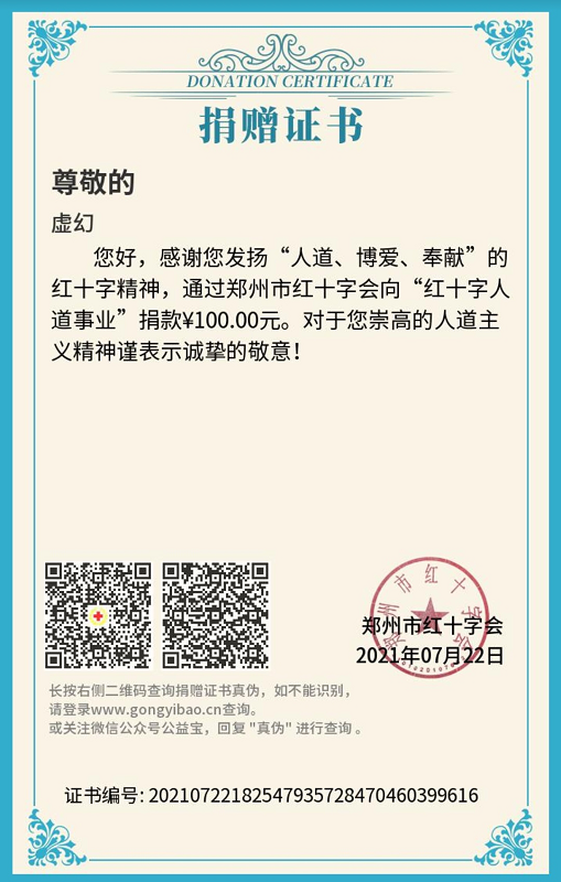 当看到家乡受灾,河南经历特大暴雨,20知产02班的王文举同学感到心里很难受。暑假在外参与实习,无法前往一线参与志愿救援,虽身在外地,心里却挂念家乡人民,随即通过郑州市红十字会、河南省青少年发展基金会,进行线上捐款,愿洪水早日散去,国泰民安。
