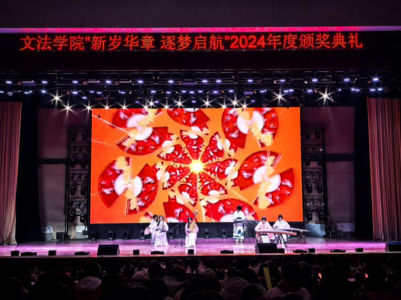 本次颁奖典礼共分为“学海泛舟 星光璀璨”、“岁序更替 梦起新篇”、“未来可期 扬帆起航”三个篇章,典礼在合唱《一路生花》的优美旋律中拉开帷幕,美好的祝福和真挚的情感瞬间点燃了现场的氛围。健美操《super shy》、舞蹈《我最红》、《candy》舞动了青春的旋律,极具节奏性的卡点以及超绝表现力都狠狠抓住了观众的眼球。民族舞《灯火里的中国》与《如愿》表达了对祖国的热爱,对未来的憧憬和对家国情怀的珍视;《青春·梦想·未来》诗朗诵让我们感受到青春与梦想带来的力量与执着;《八一风暴》情景剧将历史的烛光熊熊点燃,进一步激发了同学们的爱国热情;民乐合奏《金蛇狂舞》、汉服走秀《衣袂翩跹.汉韵流芳》展华夏风采,流转古韵今风。