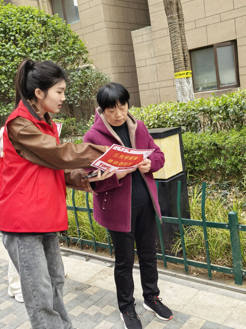 当日下午3点,志愿者们身着整齐划一的红色志愿服,手持印有 “维护权益,和谐消费” 等醒目标语的宣传页,个个精神抖擞,笑容满面。随后志愿者们分成若干小组,穿梭在社区的各个角落。在社区广场,他们热情地向过往居民发放法律宣传页,耐心讲解宣传页中的法律要点,用通俗易懂的语言将晦涩难懂的法律条文转化为居民易于理解的生活常识,引导居民思考生活中的法律问题,现场互动氛围热烈。