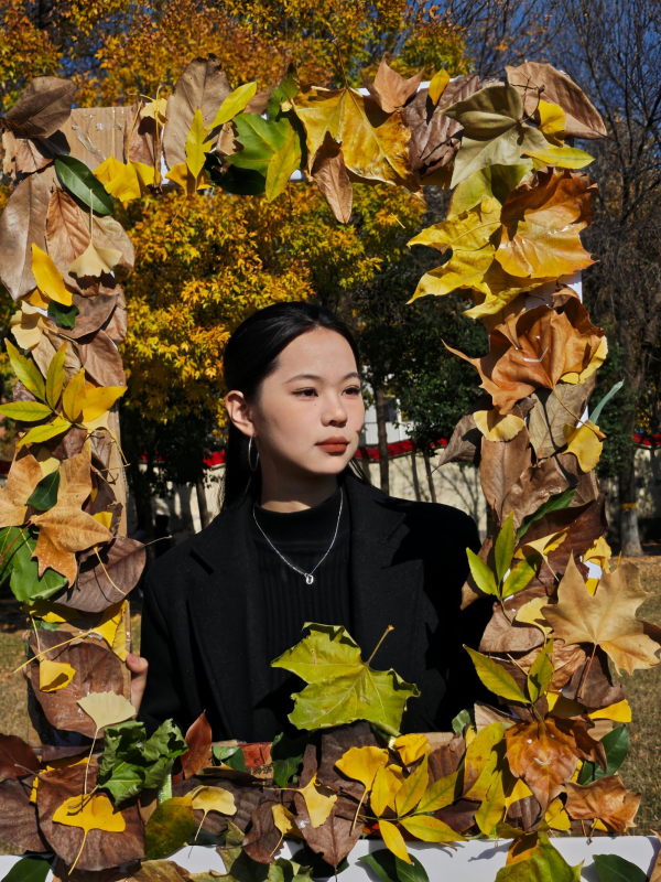 11 月 20 日活动正式启动,活动期间,不少路过的同学驻足,有的单独站在相框后拍照,有的和室友结伴合影,还有同学拿着书签翻了翻,笑着说 “夹在笔记里挺合适”。服务队的同学会偶尔上前帮忙调整相框角度,或是提醒大家轻拿轻放叶片。三天活动里,共有600 余名同学参与打卡,有同学表示:“平时上课都是匆匆走过,这次看到打卡墙,才发现校园里的树叶都黄透了,拍张照也算给这个秋天留个纪念。”