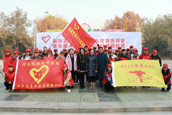 为迎接12月5日国际志愿者日,12月2日上午,文法系环手爱青年志愿者服务队与郑州10所高校的青年志愿者协会共同参加市团委组织的“国际志愿者日青年志愿服务月暨单车猎人志愿服务项目”,用实际行动履行自己志愿者的义务。